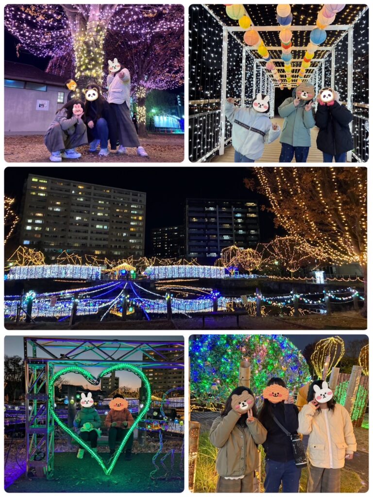 20万球のイルミネーションはまるで別世界のようで、寒さを忘れるくらい夢中になって楽しんでいました。